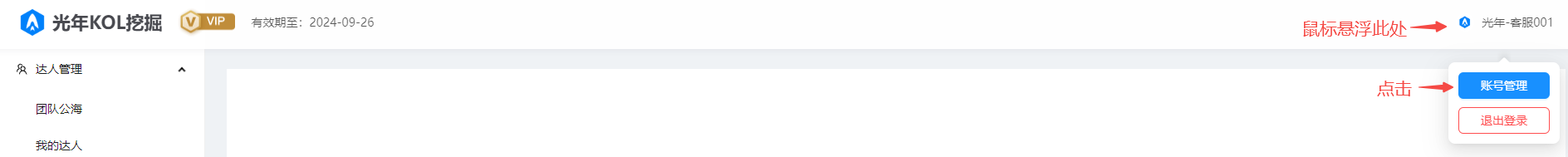 1)将鼠标放置页面右上角头像昵称处,点击【账号管理】跳转至【光年实验室】系统平台;